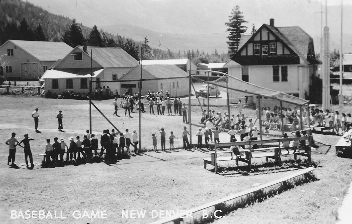 Japanese Canadians in New Denver give lakeshore properties to the village for public use as a baseball field and park. This land now encompasses the marina, campground, baseball field, picnic grounds and swimming beach at Centennial Park.