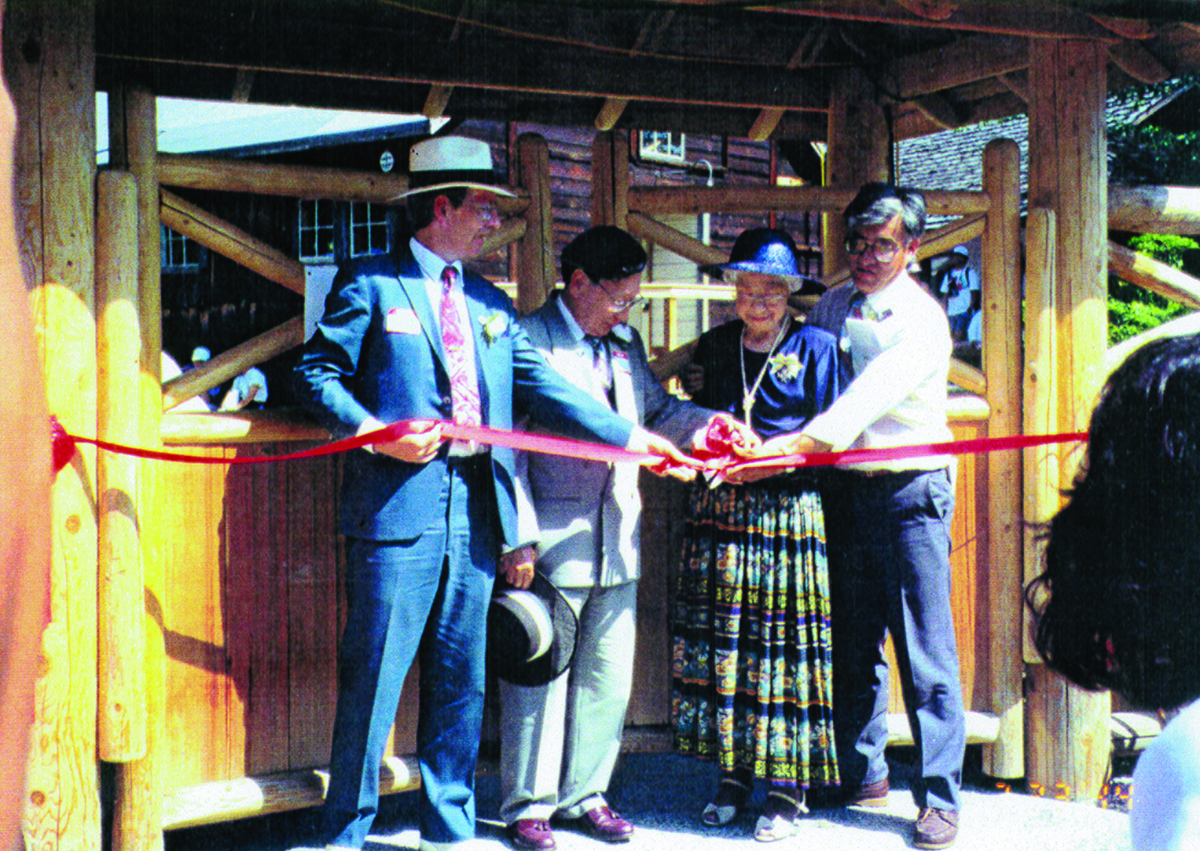 July 23 NIMC grand opening ceremony and dedication is held under a clear blue sky with over 500 guests. It is the only interpretive centre in Canada with original buildings dedicated to the history of the Japanese Canadian internment. Mrs. Chie Kamegaya cuts the ribbon to open the centre. She passes away 27 days later on August 20, 1994.